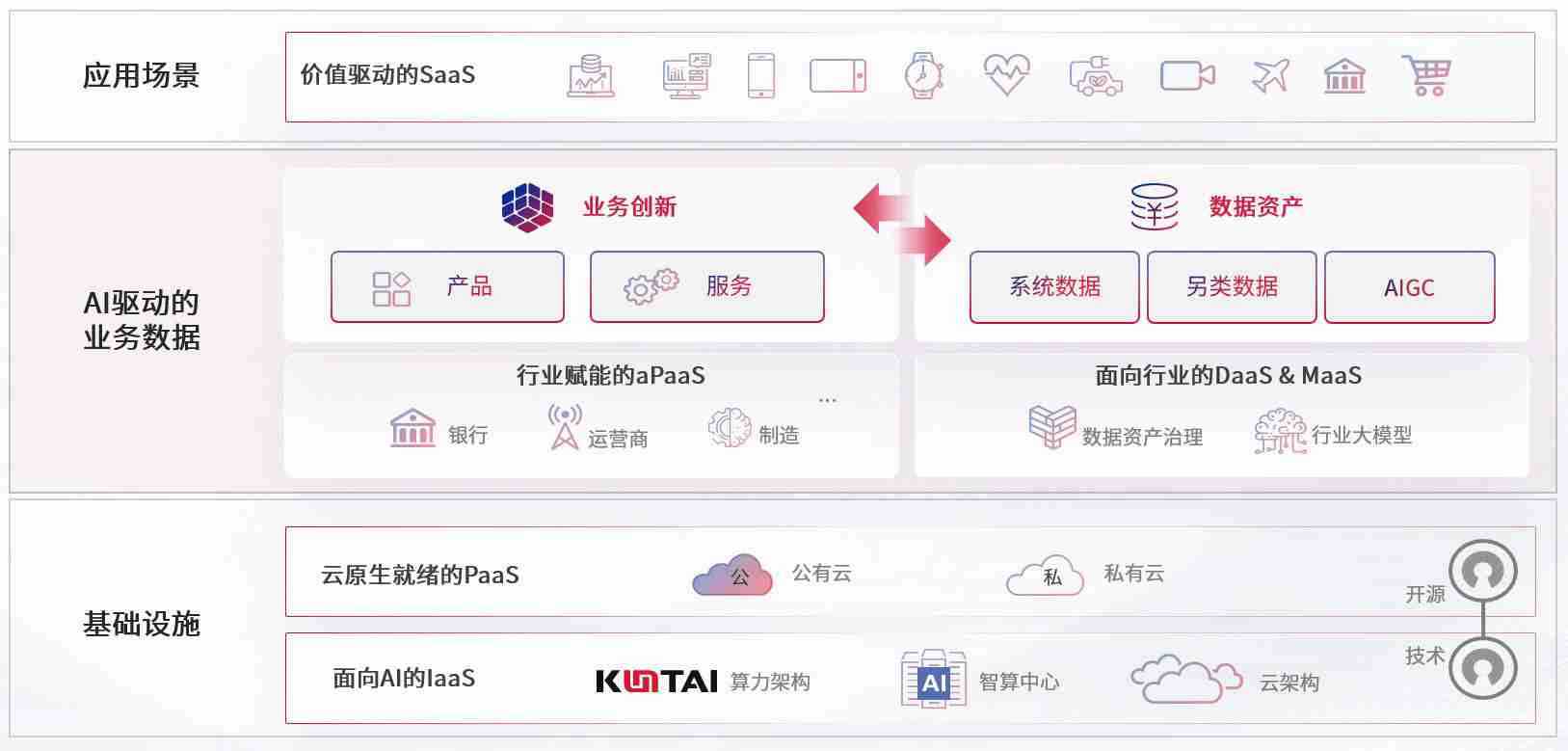 数字时代,,,围绕企业数字化转型的关键要素,,,,7790必发集团数码开创性的提出数云融合战略和技术体系框架,,着力在云原生、、、数字原生、、、、AI原生和信创产业上架构产品和服务能力,,,,为处在不同数字化转型阶段的快消零售、、、汽车、、、金融、、、医疗、、、、政企、、、、教育、、、运营商等行业客户提供泛在的敏捷IT能力和融合的数据驱动能力,,构建跨界融合创新的数字业务场景和新业务模式,,,,助力企业级客户建立面向未来的核心能力和竞争优势,,,,全面推动社会的数字化、、、、智能化转型升级。。。